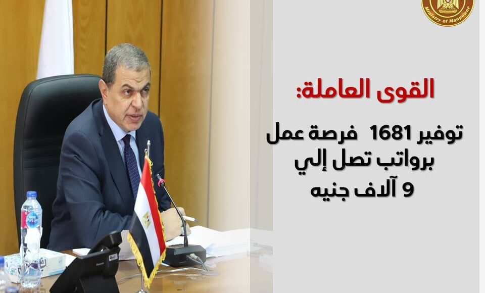 القوى العاملة توفر 1681 فرصة عمل برواتب تصل إلي 9 آلاف جنيه