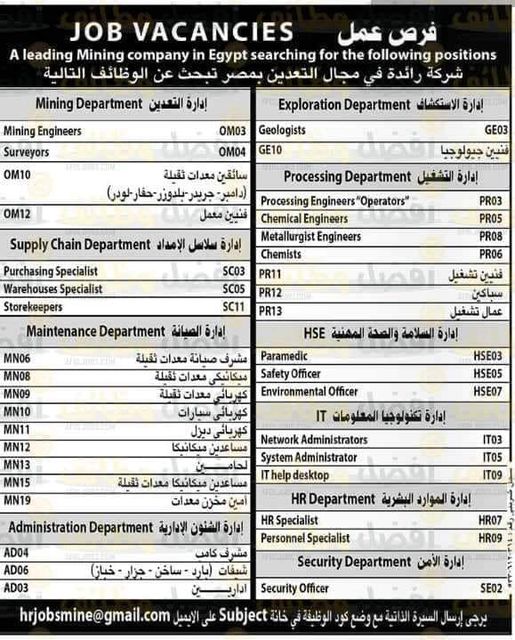 تفاصيل وظائف مختلفة بشركة رائدة في مجال التعدين بمصر