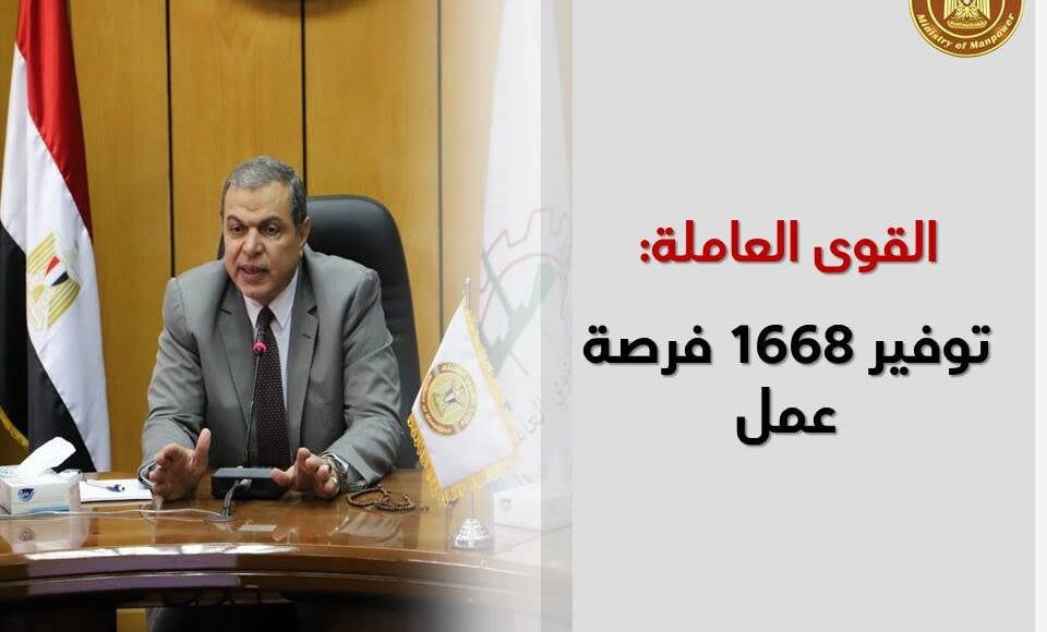 وزارة القوى العاملة توفر 1668 فرصة عمل برواتب تصل إلي 5 آلاف جنيه