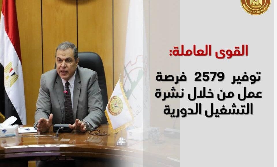 وزارة القوى العاملة توفر 2579 فرصة عمل برواتب تصل إلى 7 آلاف جنيه