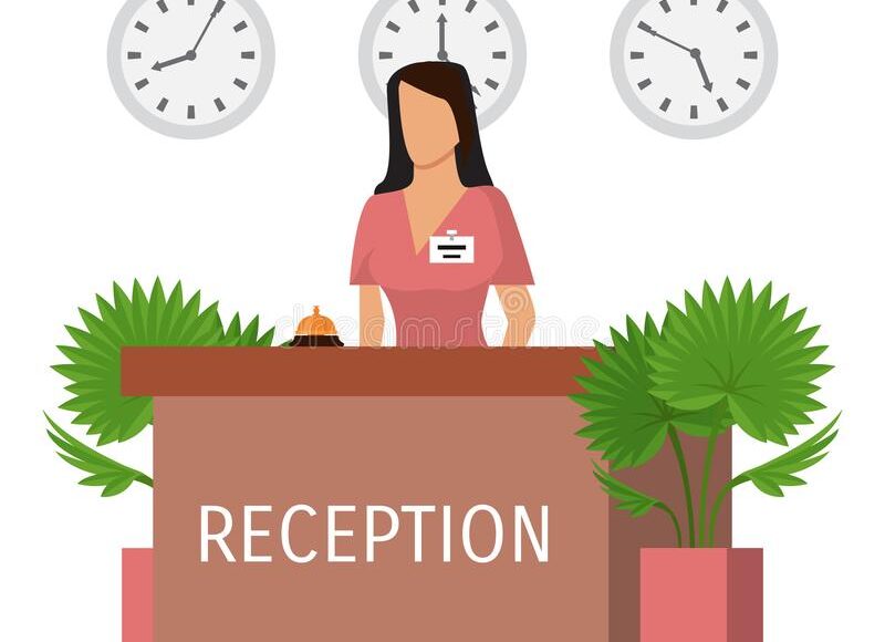 قد تشمل واجبات العمل لأحد موظفي الاستقبال الإجابة عن استفسارات الزائرين حول الشركة ومنتجاتها أو خدماتها، وتوجيه الزائرين إلى وجهاتهم، وفرز وتسليم البريد، والرد على المكالمات الواردة على الهواتف متعددة الخطوط، وتحديد المواعيد، والإيداع، وحفظ السجلات، وإدخال البيانات وتنفيذ مجموعة متنوعة من المهام المكتبية الأخرى، مثل إرسال الفاكسات أو البريد الإلكتروني. قد يقوم بعض موظفي الاستقبال أيضًا بأداء مهام مسك الدفاتر أو المهام الإدارية. بعض المكاتب وليس كلها، وإبقاء منطقة الانتظار مرتبة. يقوم موظف الاستقبال أيضا ببعض وظائف التحكم في الوصول لأمن الحراسة للمؤسسة من خلال التحقق من هوية الموظف، وإصدار تصاريح الزوار، ومراقبة أي أشخاص أو أنشطة غير عادية أو مشبوهة والإبلاغ عنها.