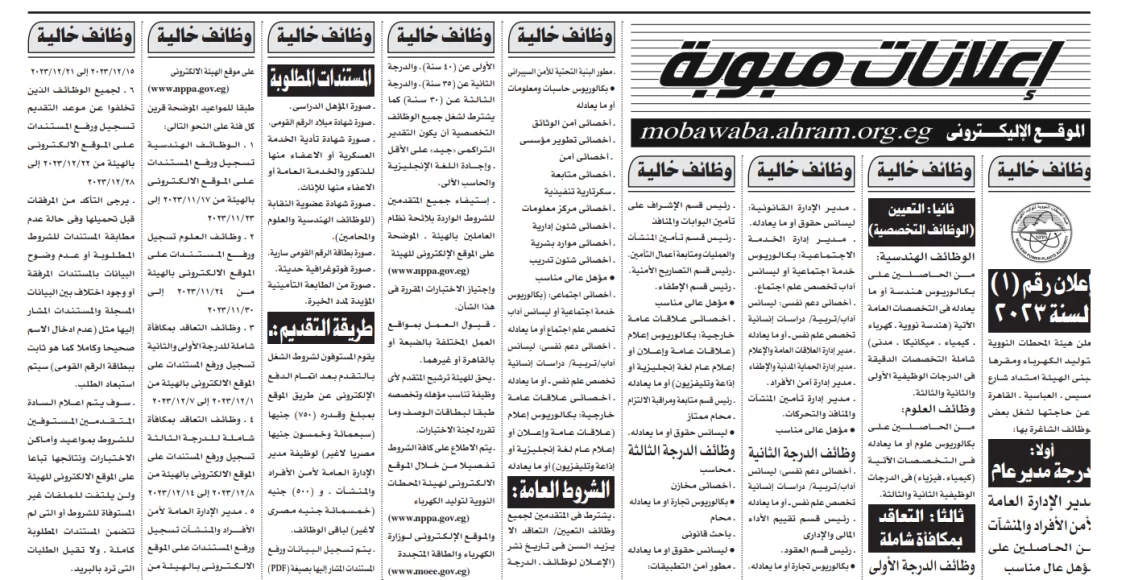 اعلان رقم (1) لسنة 2023 بهيئة المحطات النووية لتوليد الكهرباء
