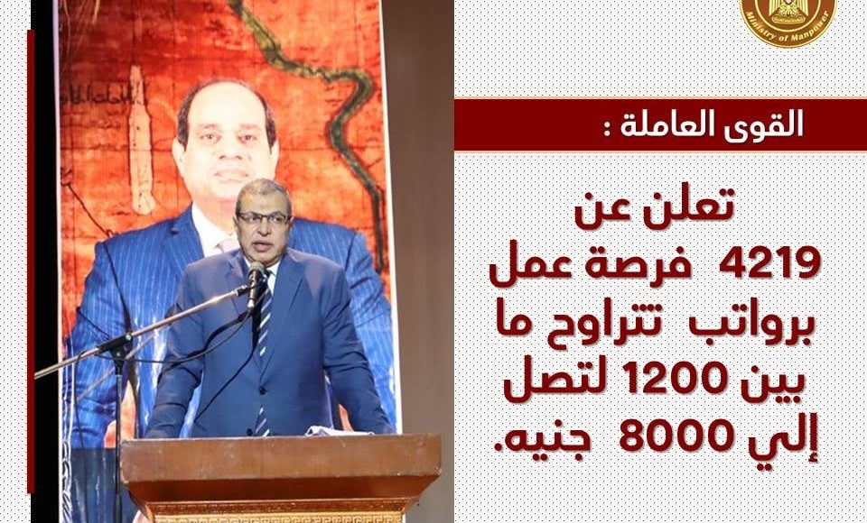 التفاصيل وكيفية التقدم لـ4219 فرصة عمل تعلن عنها وزارة القوى العاملة والهجرة
