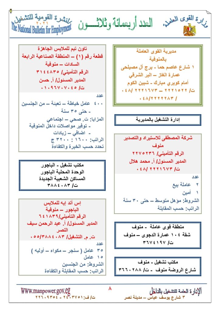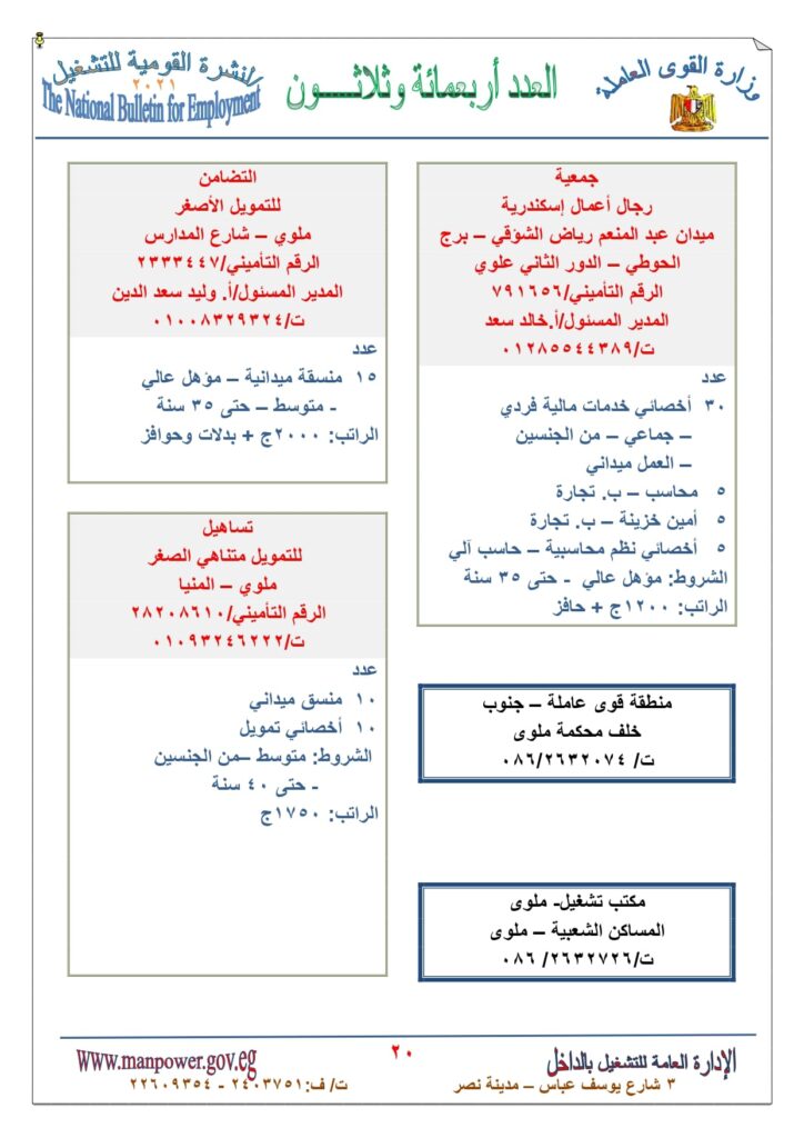 تفاصيل اعلان وظائف النشرة القومية للتوظيف لكافة المؤهلات برواتب تصل 4500 جنيه منشورإبريل 2021